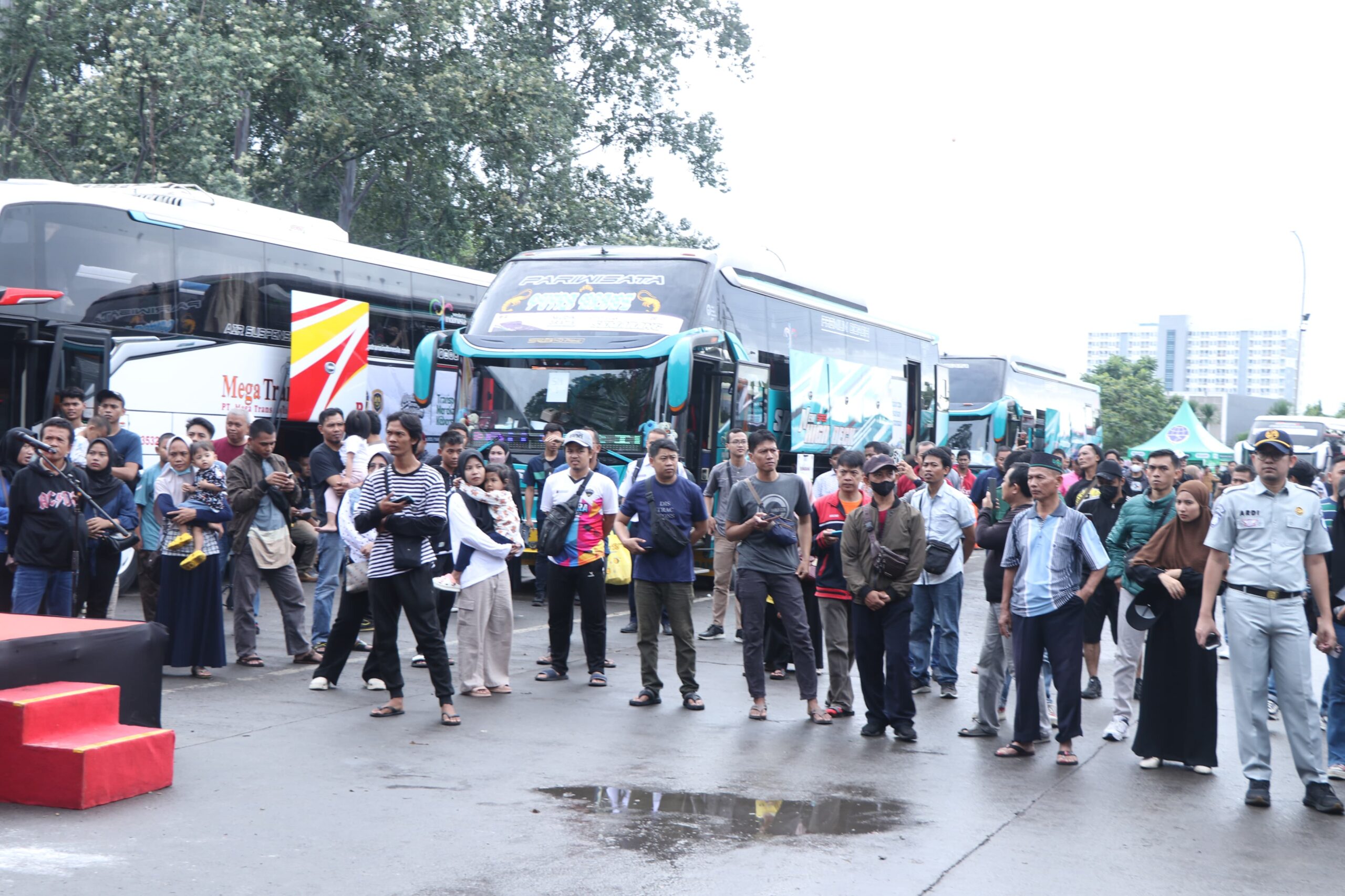 TANGERANG — Ribuan Masyarakat Tangerang menyambut suka cita untuk pulang ke kampung halaman secara gratis dalam kegiatan mudik gratis yang diselenggarakan Direktorat Jenderal Perhubungan Darat Kementerian Perhubungan (Ditjen Hubdat Kemenhub) di Terminal Poris Plawad, Kota Tangerang, Jum’at, (28/3/2025).