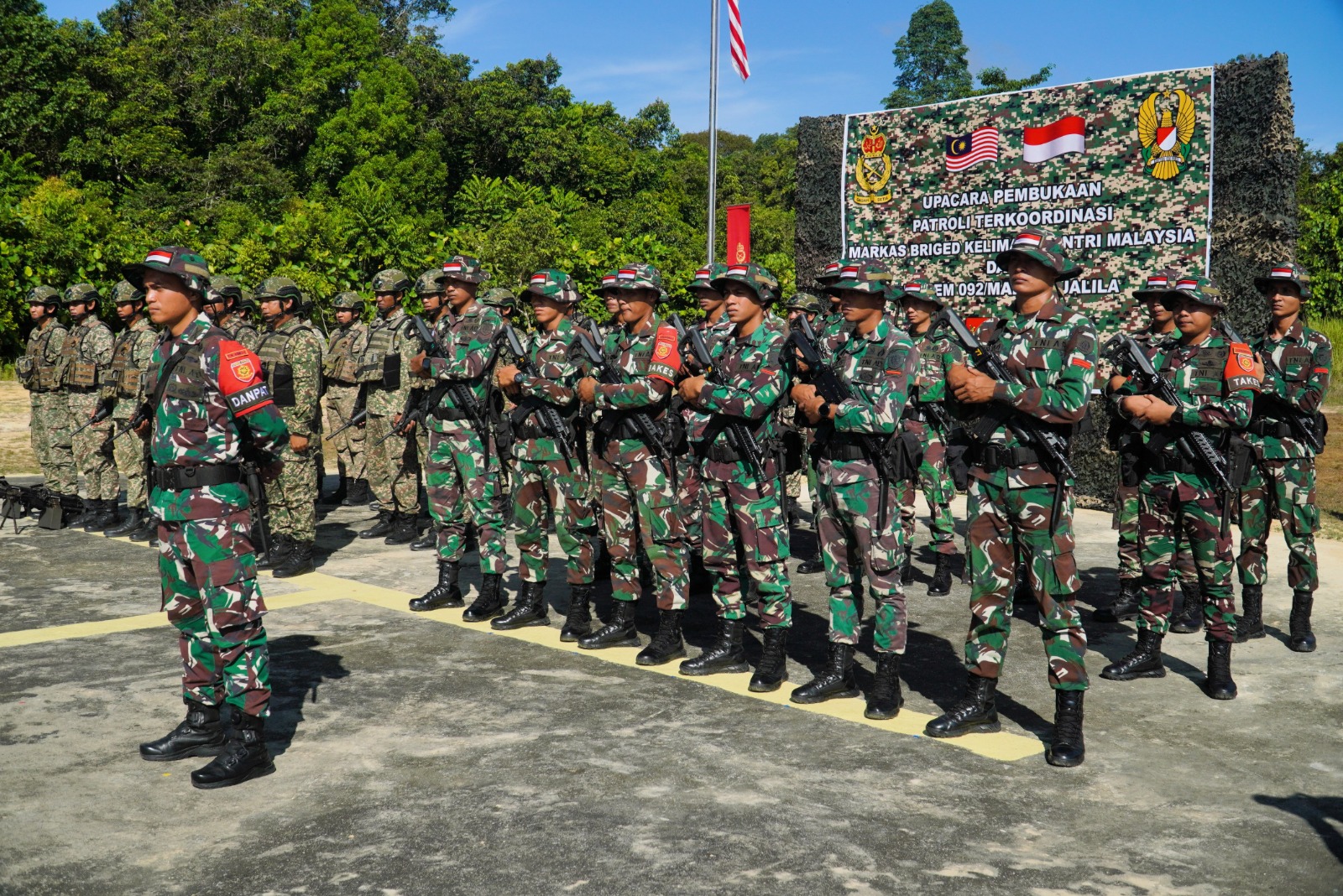 Serudong – Satgas Pamtas Yonarmed 11 Kostrad menggelar Upacara Pembukaan Patroli Terkoordinasi (Patkor) Seri I Tahun 2025 bersama Tentara Diraja Malaysia, yang dilaksanakan di Pos Serudong, wilayah perbatasan Indonesia-Malaysia. (09/04/2025)