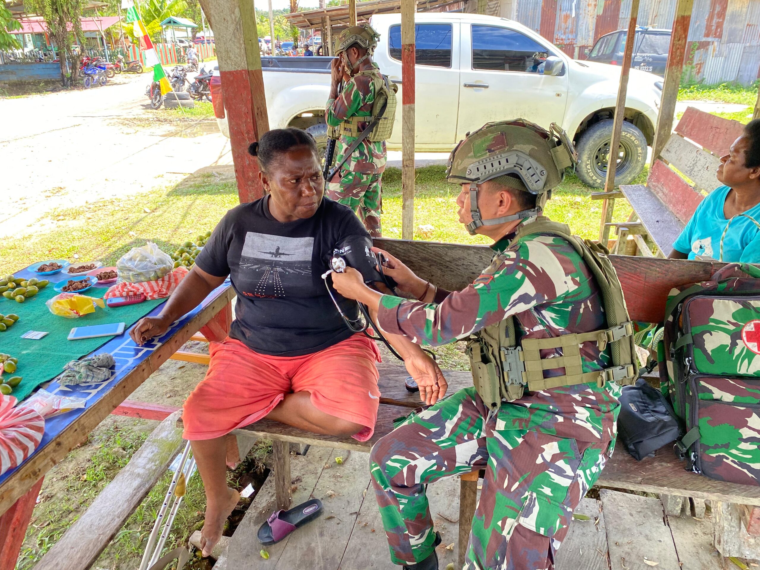 “Satgas Yonif 762/Vira Yudha Sakti Laksanakan Pelayanan Kesehatan Keliling di Kampung Aisyo”