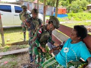 Maybrat – Dalam upaya meningkatkan kualitas kesehatan masyarakat di wilayah penugasan, Satgas Yonif 762/Vira Yudha Sakti melaksanakan pelayanan kesehatan keliling di Kampung Aisyo, Distrik Aifat, Kabupaten Maybrat, Papua Barat Daya. (8/5/2025).
