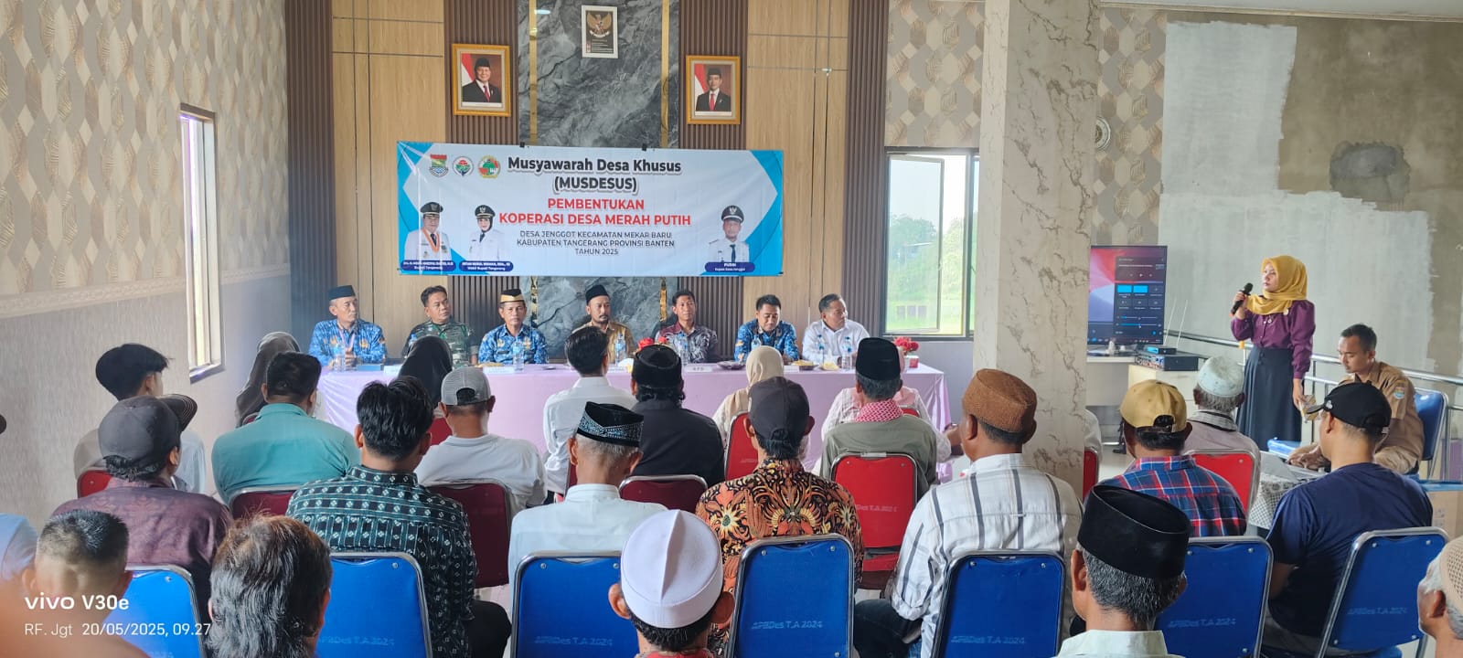 Kodam Jaya, Tigaraksa – Babinsa Desa Jenggot, Koramil 08/Kronjo Kodim 0510/Trs Serka Lukman menghadiri Musyawarah Desa Khusus (Musdesus) pembentukan Koperasi Merah Putih yang berlangsung di Aula Kantor Desa Jenggot, Kecamatan Mekar Baru Kabupaten Tangerang, Selasa (20/05/2025).