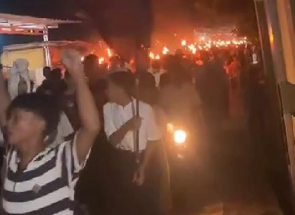 Ratusan warga dari berbagai kalangan, mulai dari anak-anak hingga orang tua, ikut serta dalam pawai obor yang dimulai dari titik kumpul menuju Mushola An-Nur, tempat digelarnya doa bersama dan tausiyah.