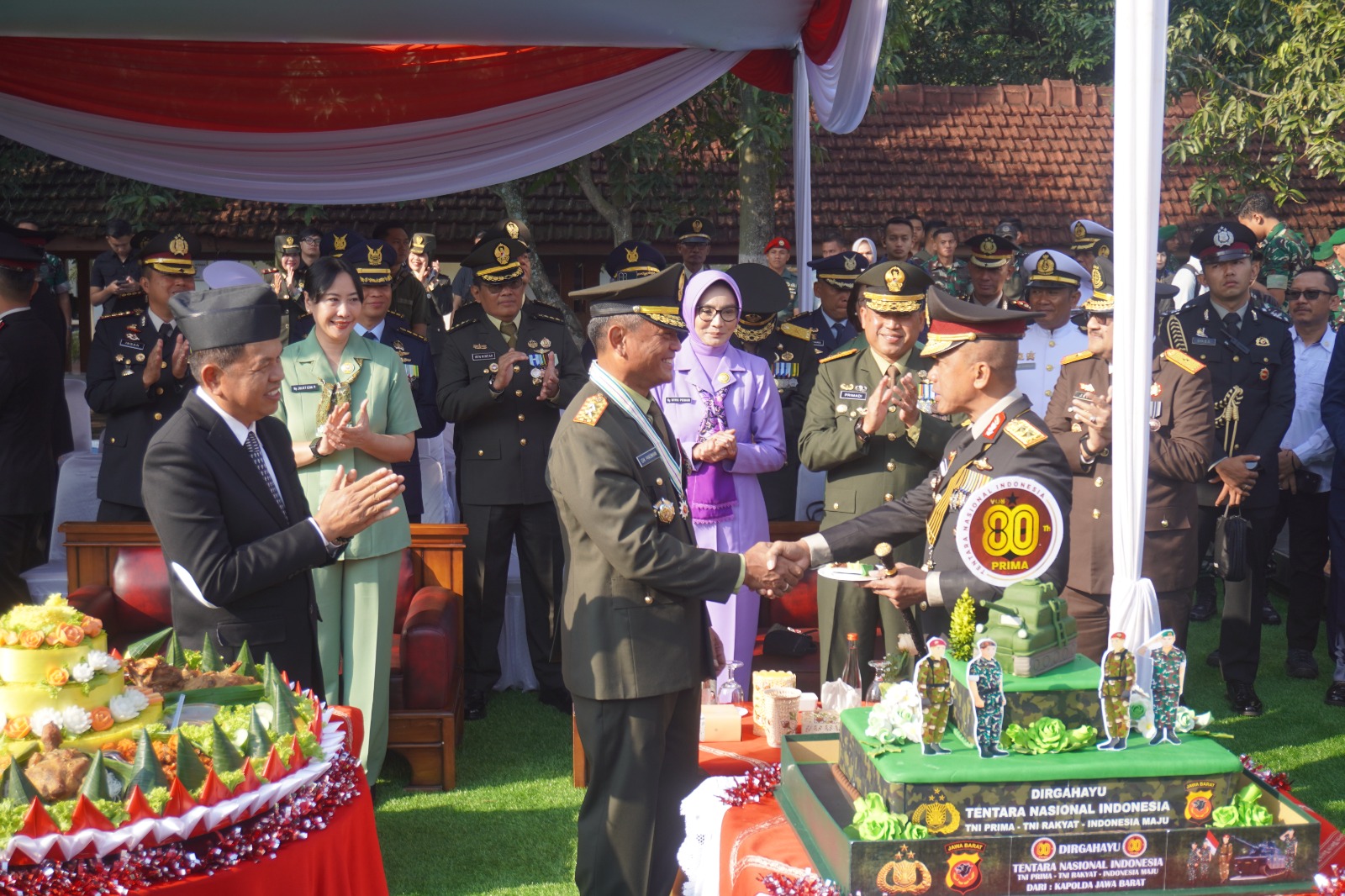 “Sesuai dengan Tema HUT ke-80 TNI, yakni TNI Prima, TNI Rakyat, Indonesia Maju. Bisa menjadi motivasi semua lembaga dan institusi negara untuk memberikan yang terbaik bagi masyarakat serta kemajuan negara. Semoga momentum ini juga dapat terus meningkatkan sinergitas dan soliditas TNI-Polri.” ungkapnya.