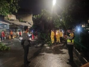 Respon Cepat Aduan Warga Melalui 110, Polsek Palmerah Tangani Pohon Tumbang di KS Tubun