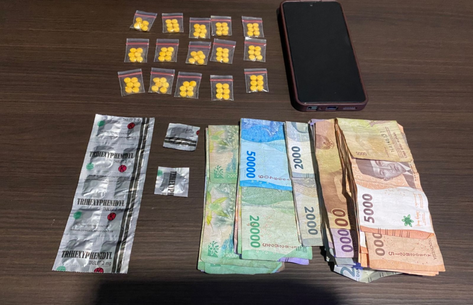 Sementara itu, dari tangan Sdr. S, diamankan 15 (lima belas) plastik klip bening yang masing-masing berisi 6 (enam) tablet obat yang diduga jenis Hexymer, serta 12 (dua belas) tablet obat yang diduga jenis Trihexyphenidyl.