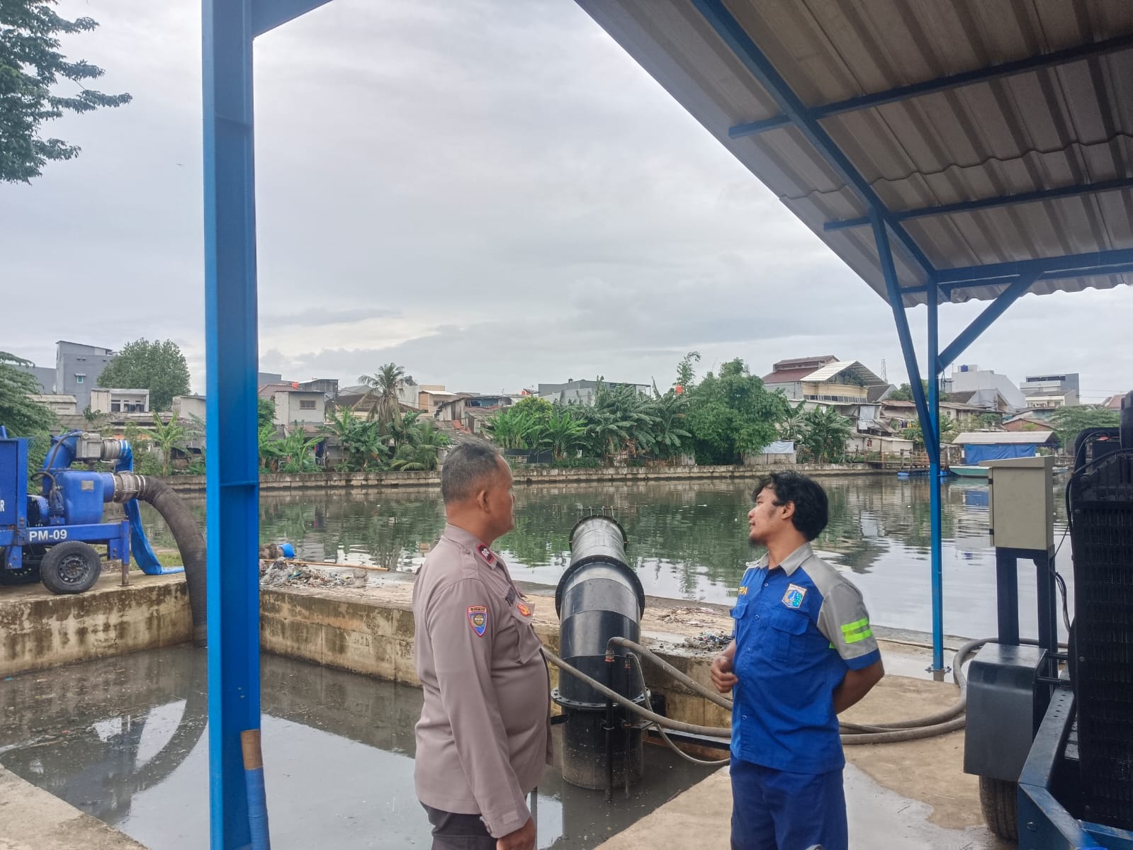 Bhabinkamtibmas Kedoya Utara Sambangi Petugas Pompa Air, Antisipasi Genangan dan Jaga Kamtibmas”