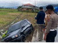 mobil sempat terperosok ke area persawahan