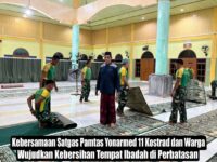 Kebersamaan Satgas Pamtas Yonarmed 11 Kostrad dan Warga Wujudkan Kebersihan Tempat Ibadah di Perbatasan